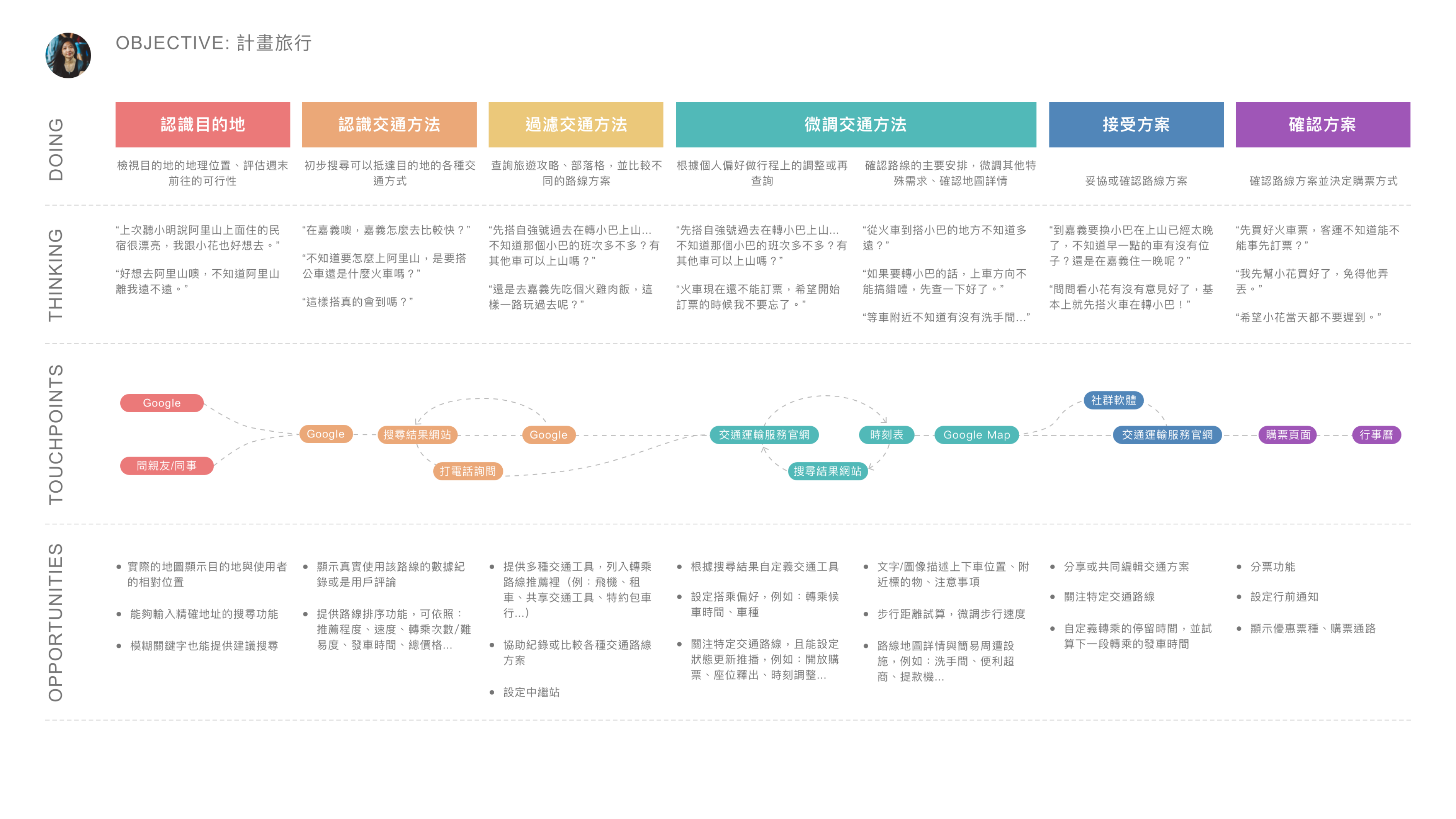 Despite the integration efforts, a gap persisted between users' needs and the existing solutions. As a UX researcher, I conducted a series of studies to uncover users' pain points and improve the overall experience of scheduling trips in Taiwan.